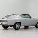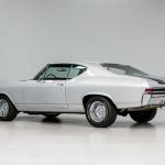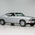 The silver exterior highlights the sleek body lines introduced with the redesigned 1968 Chevelle generation.