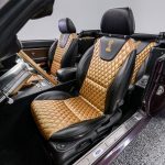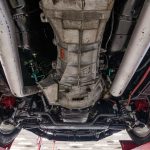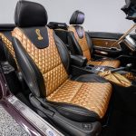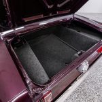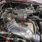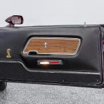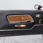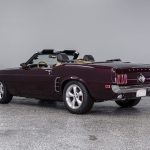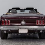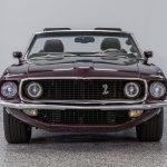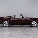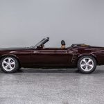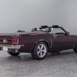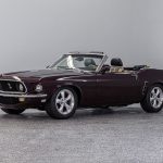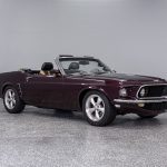 The Black Cherry exterior highlights the aggressive body lines and timeless Mustang design. Inside, the cabin offers a classic layout that combines vintage styling with modern mechanical reliability.